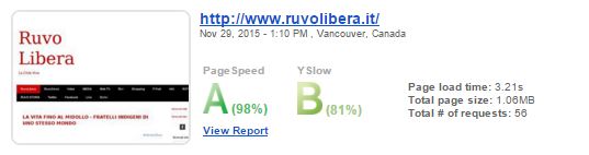 Solo 3 secondi e 21 per caricare la pagina e il 98% dello score Page Speed di Google, praticamente l’oscar della velocità.
