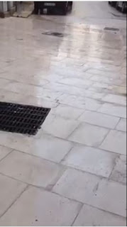 Vedete scorrere l’acqua evitando le griglie di raccolta. Praticamente messe al lato opposto delle pendenze. Non dite…