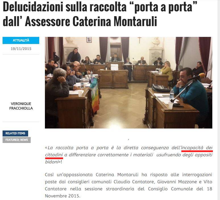 È successo a Ruvo. Dove l’amministrazione più incapace di sempre, l’unica che può stare alla pari con le amministrazioni barbariche di fine millennio scorso, ha osato dare degli incapaci a tutti i Ruvesi per l’insufficiente resa della raccolta differenziata.