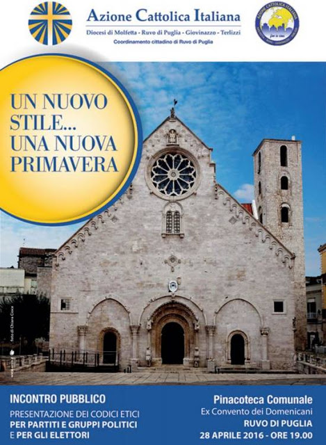 #SalviamoRuvo Incontro Pubblico indetto dall’Azione Cattolica in occasione delle elezioni comunali che si terranno a Ruvo il prossimo mese di Giugno. L’iniziativa è rivolta ai candidati Sindaci, ai relativi partiti e movimenti politici che li …